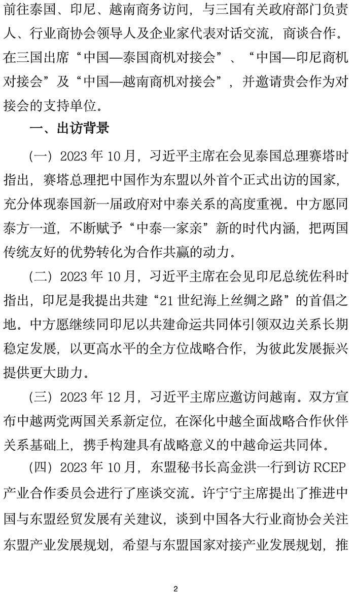 致:中国通用机械工业协会——关于前往泰国、印尼、越南商务访问的邀请函(5.25-6.2)