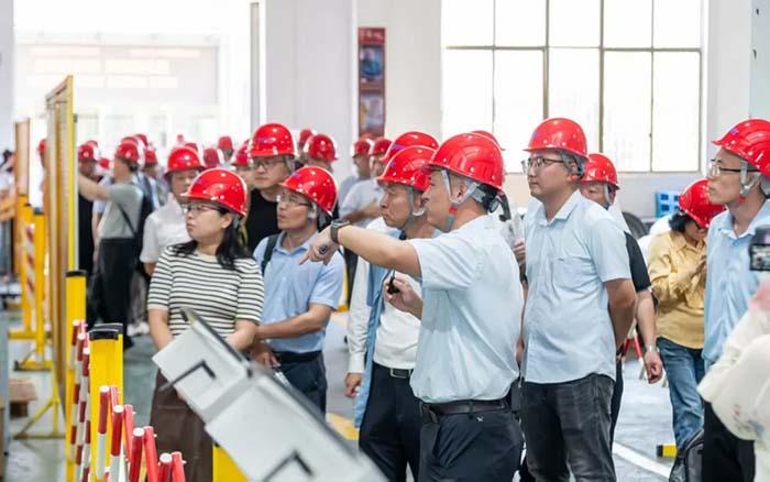 考察团走进各生产车间,由公司副总裁胡峰为大家现场解说产品生产流程,及公司先进的制造设备。