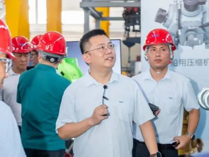 工厂参观完成后,公司高层与到访各方在无锡院士小镇举行座谈会,大家就行业发展、自身需求等话题深入沟通。首先会议由陈志兴董事长致辞,由公司船用销售部经理刘云峰向大家介绍了公司的船用电机业务,向客户传达公司致力于成为绿色节能、智能化的船舶电机供应商理念,介绍公司全球服务网络。