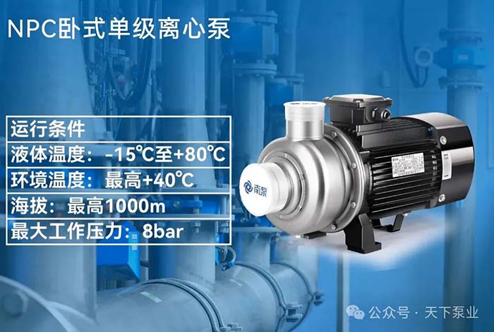 NPC系列卧式单级离心泵采用轴向吸入,径向排出结构,配合精密机械密封装置,有效保障运行稳定性,蜗壳采用先进的冲压抛光工艺,大幅降低流体阻力,有效提升整泵效率。该泵型具有结构紧凑、维护便捷的特点,其过流部件采用不锈钢材质,确保在长期运行工况下的耐腐蚀性能。