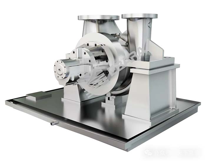 转子两端支撑、径向剖分、壳体中心线支撑结构,重载设计,减少高温影响。