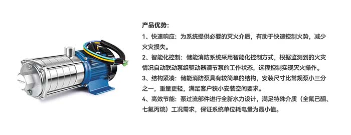 作为我国实现“双碳”的重要载体,并且也是我国能源动力升级的核心引擎,储能尤其是新型储能所获得的政策支持力度不断加码,未来储能市场的扩容与升级脚步势必进一步加快。南方泵业长期深耕储能行业,应对储能行业严酷的现场环境条件、严格的工况和安全要求,打造适配于储能系统的储能消防配泵解决方案。以具备快速响应、智能化控制和高效节能优势的NFXCN-CM系列储能消防泵,确保储能系统长期、稳定、高效、安全地运行,赋能储能行业高质量发展。