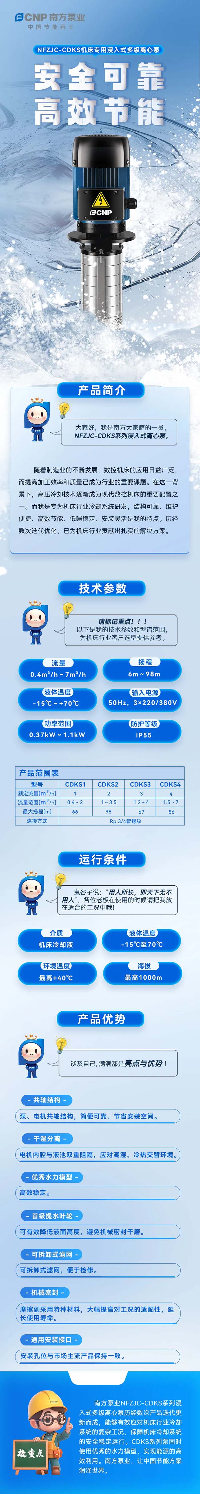 安全可靠 高效节能丨南方泵业 NFZJC-CDKS机床专用浸入式多级离心泵
