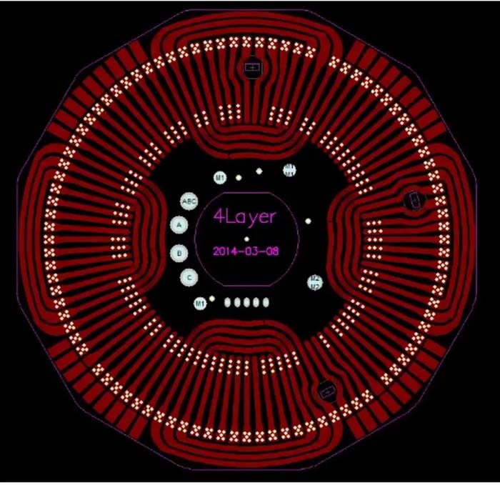 定子开辅助槽结构 槽口宽度优化 定子槽口的存在是齿槽转矩产生的主要原因,通常认为,槽口宽度越小越好。对于整数槽电机,通过有限元仿真分析,齿槽转矩随槽口宽度单调增加。对于分数槽电机如12槽14极电机,进行有限元仿真分析,当槽口宽度为3.45mm时,齿槽转矩约为槽口宽度2mm时的6%,约为槽口宽度4mm时的10%。对于分数槽电机,并非槽口宽度越小越好,存在可优化的槽口宽度选择。 无槽式绕组 最彻底而又简单的方法是采用无槽式绕组结构。电枢绕组有粘贴在光滑转子表面的,也有做成动圈式(moving coil)的,或者是盘式电机的印刷绕组(printed circuit winding),不管采用何种形式电枢绕组的厚度始终是实际气隙的组成部分,因此无槽式电机的实际等效气隙比有齿槽电机大得多,所需的励磁磁势也要大许多,这在早期限制了无槽电机的容量和发展。这块国内在很早确实已经在研究和试制了,不过没有听说哪个公司有批量的产品。英国有一家专门做此种电机的公司,在一些航空领域应用的比较多了。
