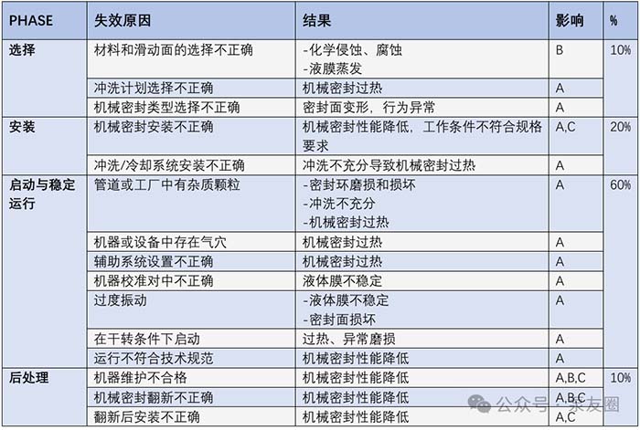 下表概述了导致机械密封失效的关键因素: